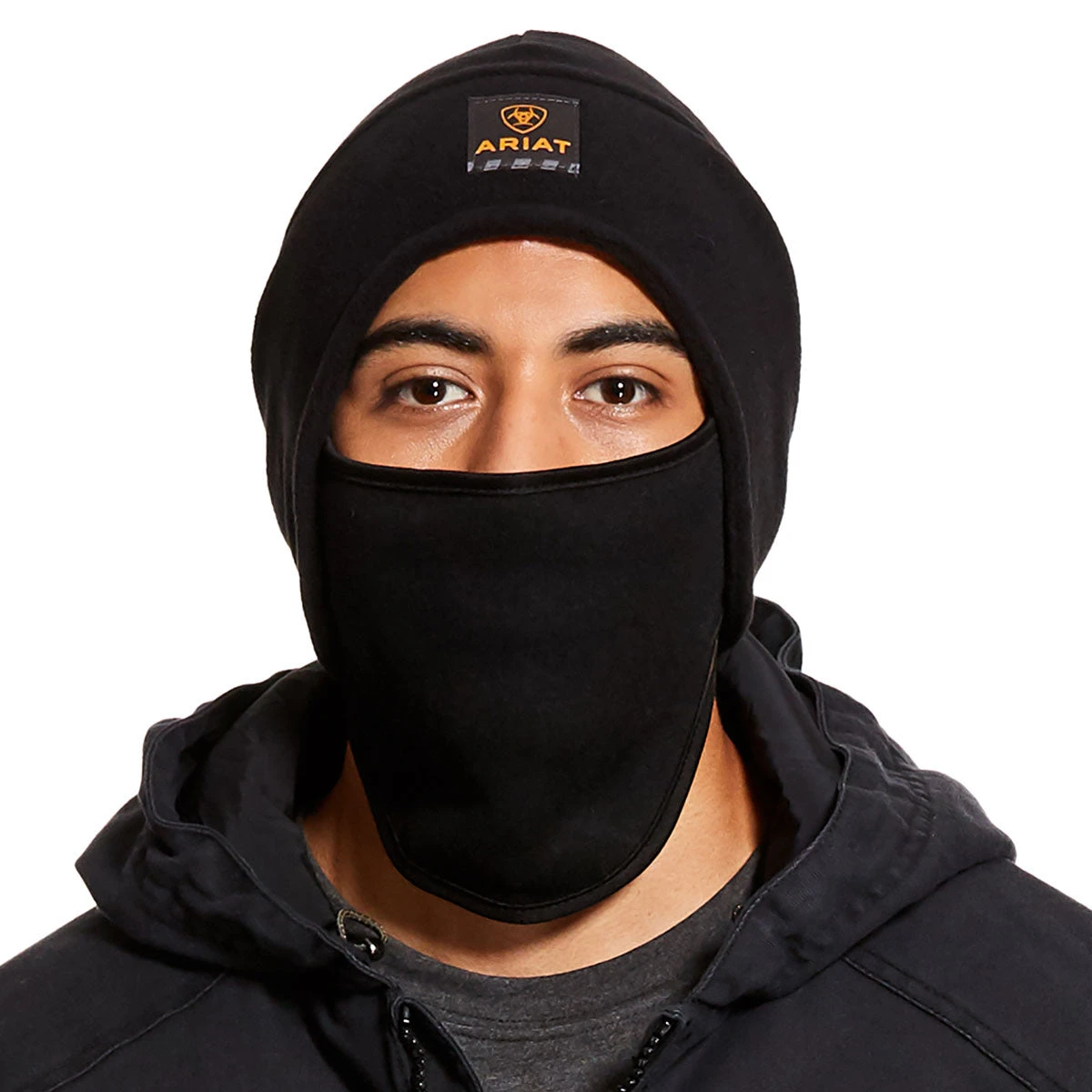 The Ariat Rebar 2-in-1 Cap combines a hat with a face warmer to keep you comfortable while working in cold temperatures. The durable construction works just as hard as you do. Ariat Rebar logo patch on front.
