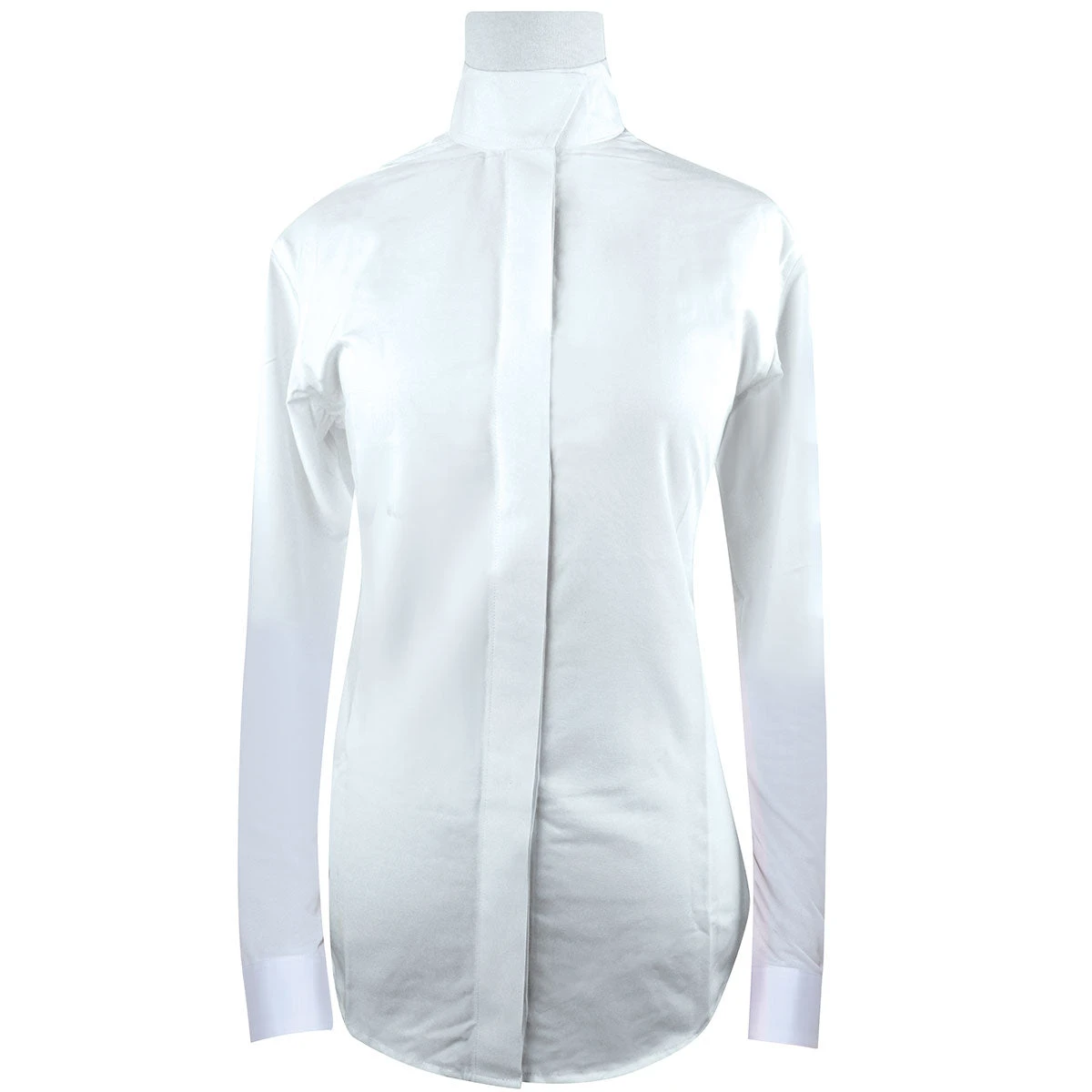 Coolmax Long Sleeve Ladies Show Shirt is a cool, comfortable shirt designed with the rider in mind. The easy wearing, moisture wicking fabric is ideal for any show season, with a worry free snap neck closure for a crisp traditional look.