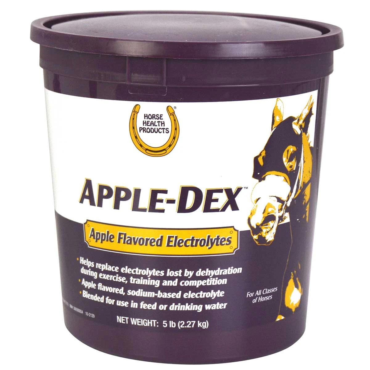 Apple Dex Electrolyte by Horse Health is an Apple-flavored, sodium-based electrolyte supplement that helps replace body fluids lost during strenuous activity such as training or competition. Apple Dex is micro-blended for use in feed or drinking water.