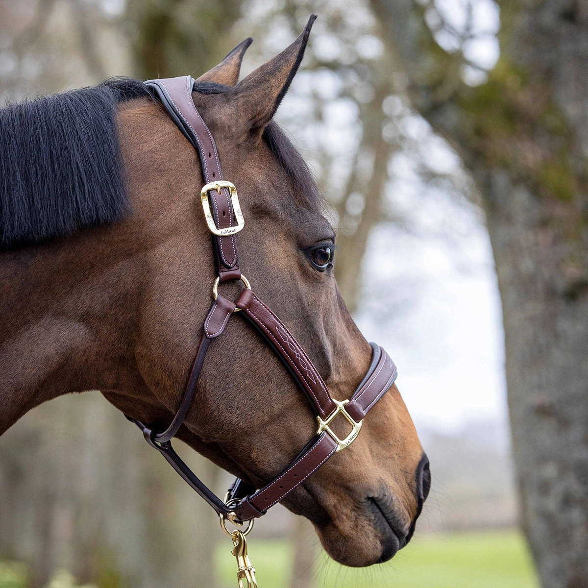 Anatomically shaped Leather Halter by LeMieux. This high quality padded halter has elegant stitching detail for a classic look. Featuring anatomically shaped crown and noseband to provide complete comfort to the horse. Also features double adjustable crown piece and adjustable chin strap for ideal fit. The LeMieux Leather Halter has solid metal hardware with subtle LeMieux branding.