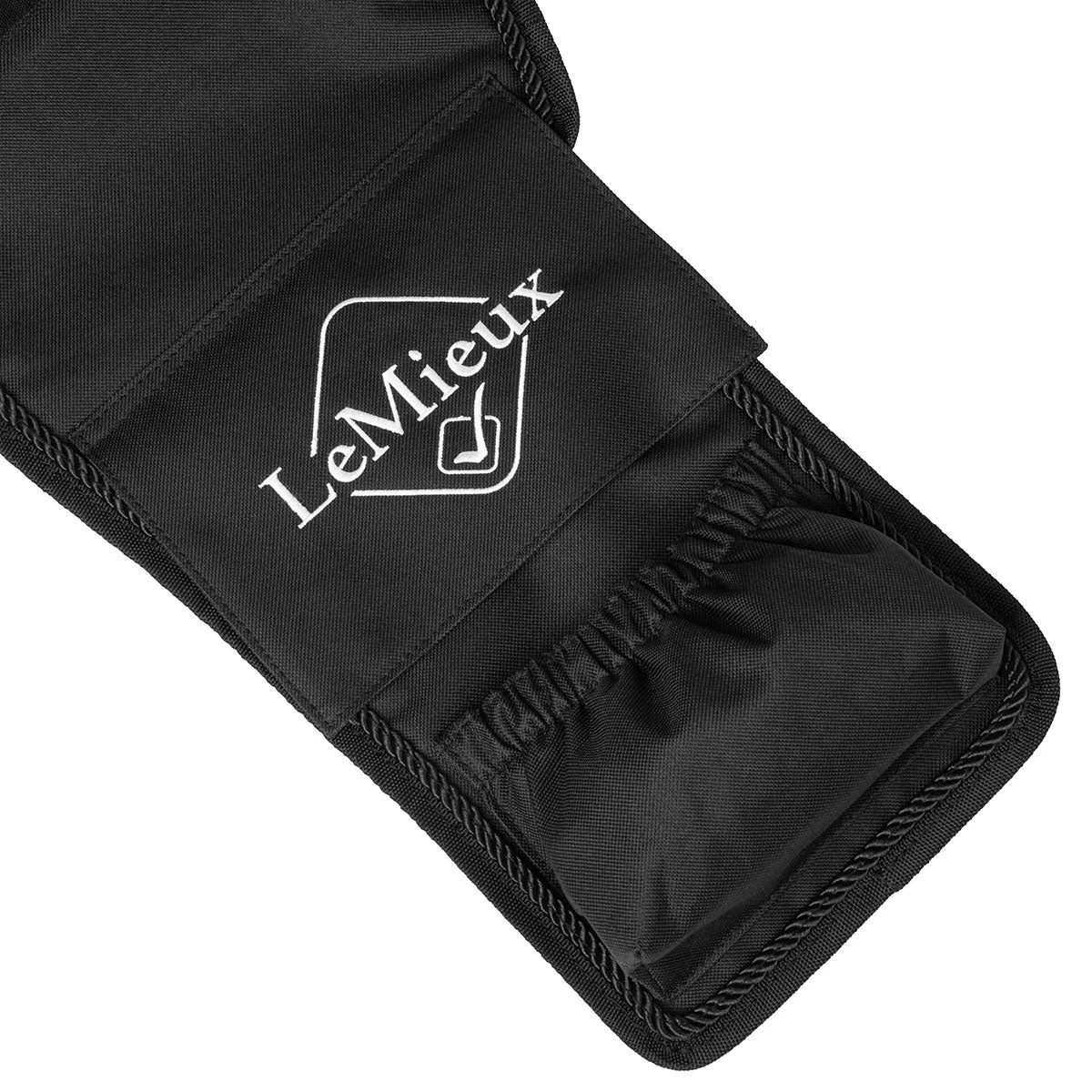 Keep your saddle from getting scuffed up with the LeMieux Vector Stirrup Cover. Lined with soft micro-fleece, the stirrup cover lays over the pommel of the saddle for protection against marks from the stirrup irons. The stirrup irons are then placed neatly into elasticated pockets with magnetic flap closure. Cover is easy to keep clean, simply wipe off with damp rag.